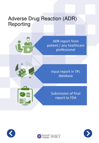 Adverse Drug Reaction (ADR) Reporting ADR report from patient / any healthcare professional Input report in TPL database Submission of final report to FDA