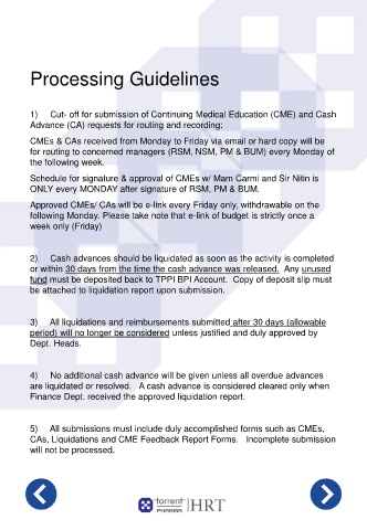 1) Cut- off for submission of Continuing Medical Education (CME) and Cash