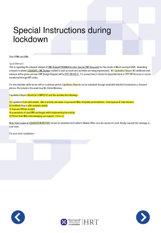 Special Instructions during lockdown