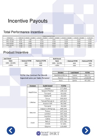 Incentive Payouts Total Performance Incentive Product Incentive PCPM: Per Contract Per Month Expected sales per Sales Personel