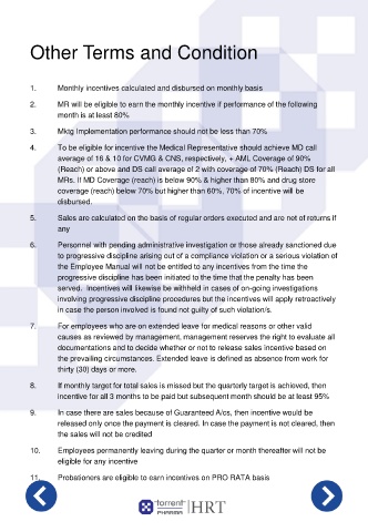 2. MR will be eligible to earn the monthly incentive if performance of the following