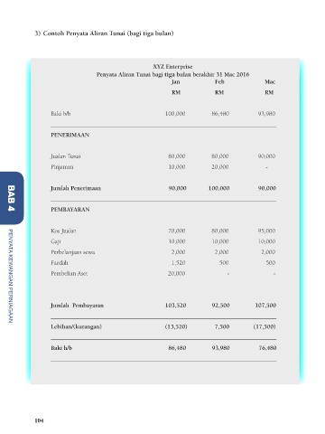 3) Contoh Penyata Aliran Tunai (bagi tiga bulan)
