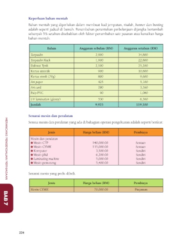 Semua mesin dan peralatan yang ada di bahagian operasi pengeluaran adalah seperti berikut: