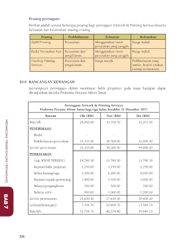 ditunjukkan melalui Proforma Penyata Aliran Tunai.