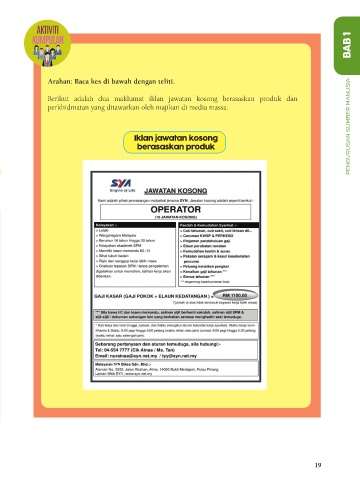 Berikut adalah dua maklumat iklan jawatan kosong berasaskan produk dan