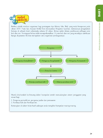 Berikut adalah struktur organisasi bagi perniagaan Ayu Bakery Sdn. Bhd. yang mula beroperasi pada