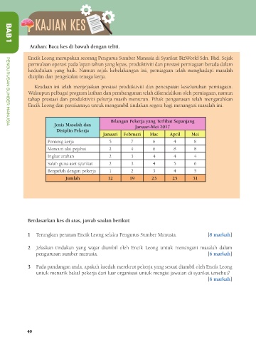 2 Jelaskan tindakan yang wajar diambil oleh Encik Leong untuk menangani masalah dalam