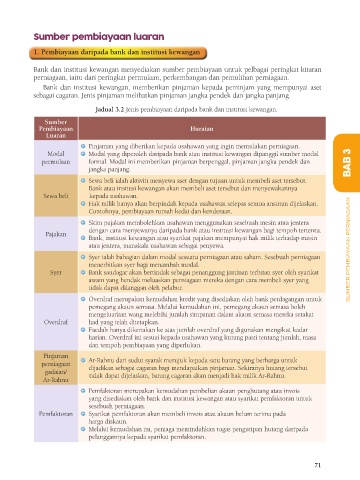 Jadual 3.2 Jenis pembiayaan daripada bank dan institusi kewangan.