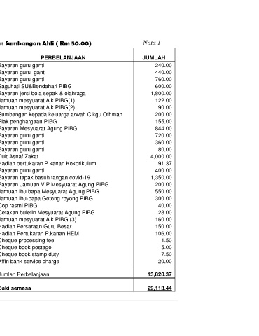 2 Kutipan Sumbangan Ahli PIBG ( 2020 ) 31,371.40 2 Bayaran guru ganti 440.00