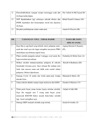 BIL CADANGAN / USUL (TIDAK HADIR) NAMA IBU BAPA