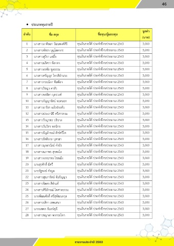 28 นางสาวชญาดา พากระโทก ทุนเงินรายได้ ประจ าปีงบประมาณ 2563 3,000