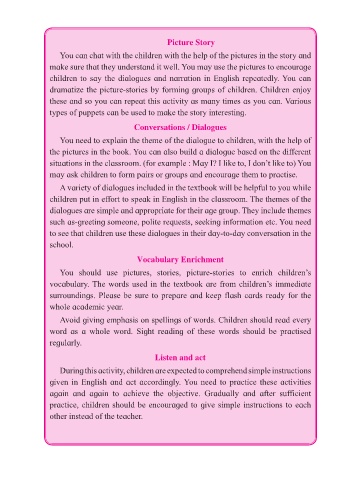 children to say the dialogues and narration in English repeatedly. You can