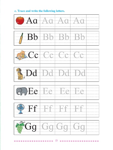 c. Trace and write the following letters. Aa Aa Aa Aa Bb Bb Bb Bb Cc Cc Cc Cc Dd Dd Dd Dd Ee Ee Ee Ee Ff Ff Ff Ff Gg Gg Gg Gg t t t t t t t t t t t t t t t t t t 13 t t t t t t t t t t t t t t t t t t