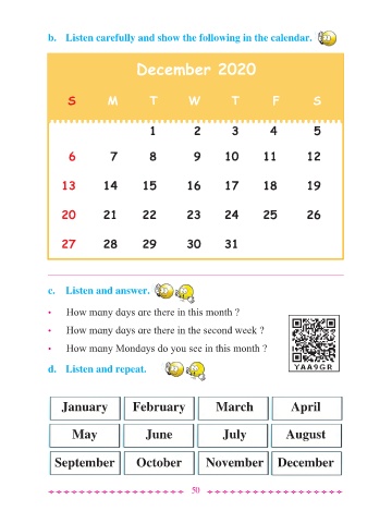 b. Listen carefully and show the following in the calendar.