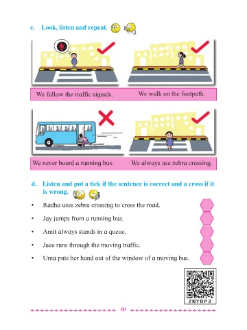 • Radha uses zebra crossing to cross the road.