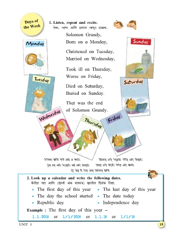 Days of 1. Listen, repeat and recite.