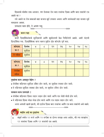 िदवसाचे चोवीस तास असतात. पण रोजच्या रोज बारा तासाचा िदवस आिण बारा तासाची रा@