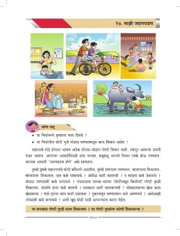 • या िच ांतील छोटी मुले मो ा माणसांकड न काय िशकत आहेत ?