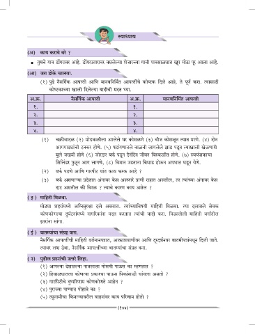 (१) पुढे नैसिगर्क आपत्ती आिण मानविनिमत आपत्तींच कोष्टक िदल आह. त पूणर् करा. त्यासाठी