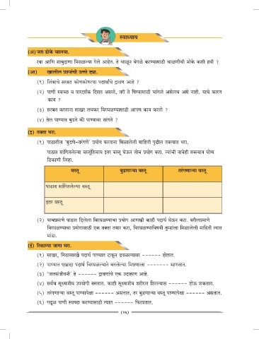 (१) पाठातील ‘बुडणे-तरंगणे’ 4योग करताना िमळालेली मािहती पुढील तक्त्यात भरा.