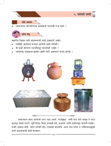 साठवून ठेवावे लागत. पवीर् िपतळ िकवा तांब्याचे हंडे, कळश्या आिण मातीपासन केलेली मडकी-