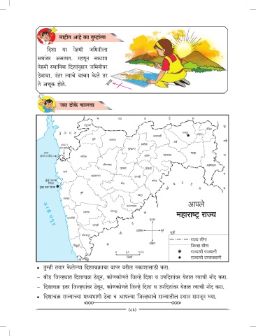 िदशाचs राज्याच्या मध्यभागी ठेवा व आपल्या िजल्ाचे राज्यातील स्थान समजून घ्या.