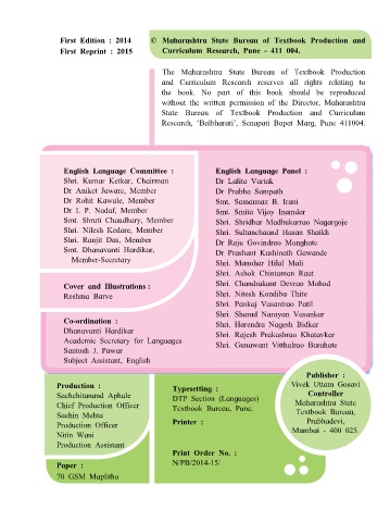 First Reprint : 2015 Curriculum Research, Pune - 411 004.