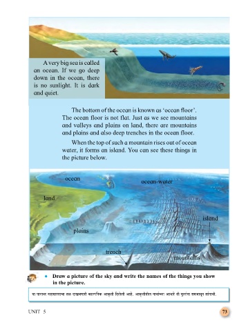 and plains and also deep trenches in the ocean floor.