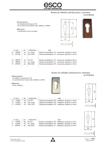 31 - 253766 szt. RAL 9016 Rozeta prostokątna, PZ , nasuwana, grubość a=6mm