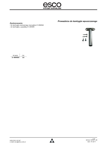 Prowadnica do kantrygla wpuszczanego Zastosowanie: - do kantrygla sterowanego manualnie 21-884642 - do kantrygla z zapadką 21-349380 nr esco j.m. 24-884650 szt. strona: 40.07. 02 www.esco.com.pl e-mail: esco@esco.com.pl stan: 07.2011