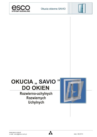 Okucia okienne SAVIO OKUCIA „ SAVIO ” DO OKIEN Rozwierno-uchylnych Rozwiernych Uchylnych www.esco.com.pl e-mail: esco@esco.com.pl stan: 05/2010