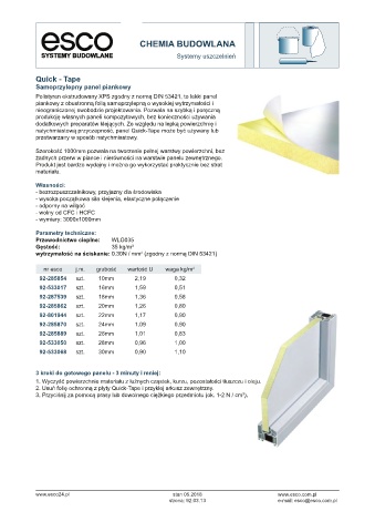 nr esco j.m. grubość wartość U waga kg/m 2