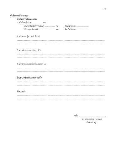 ผ่านจุดประสงค์การเรียนรู้ ..................... คน คิดเป็นร้อยละ .........................