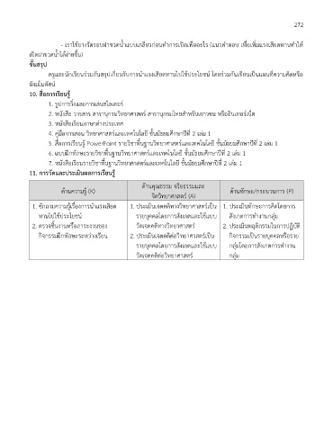 Page 274 - แผนการจัดการเรียนการสอนวิทย์พื้นฐาน ม.2