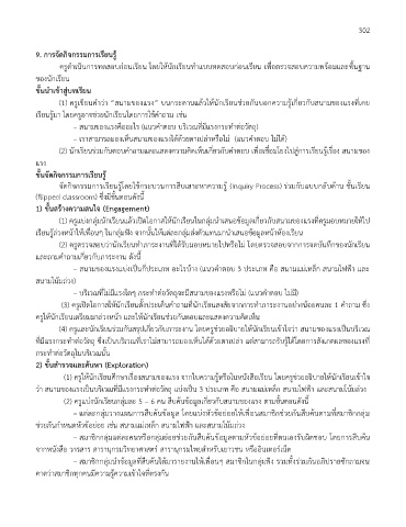 จดกิจกรรมการเรียนรู้โดยใชกระบวนการสบเสาะหาความรู้ (Inquiry Process) ร่วมกับแบบกลบดาน ชนเรียน