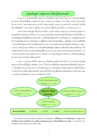 สรุปหลักสูตรฯ กลุ่มสาระการเรียนรู้วิทยาศาสตร์ *