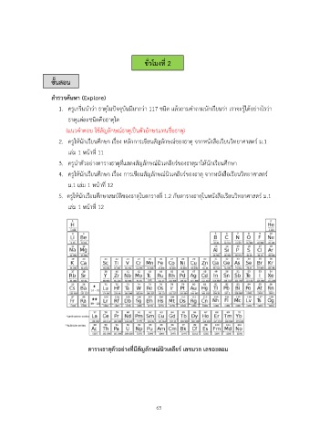 5. ครูให้นักเรียนศึกษาสมบัตของธาตุในตารางที่ 1.2 กับตารางธาตุในหนังสือเรียนวิทยาศาสตร์ ม.1