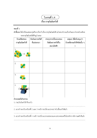 คำชี้แจง ให้นักเรียนแตละกลุ่มศึกษาเกี่ยวกับเรื่อง ธาตกัมมันตรังสี แลวตอบคำถามเกี่ยวกับแบบจำลองนิวเคลยส