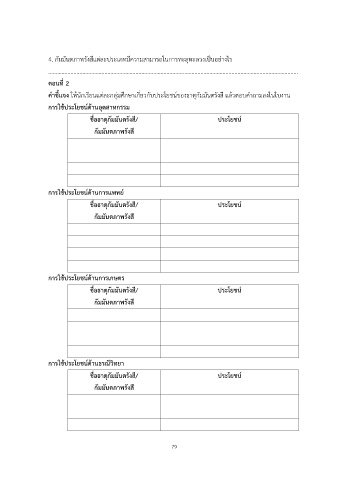 คำชี้แจง ให้นักเรียนแต่ละกลุ่มศึกษาเกี่ยวกับประโยชน์ของธาตกัมมันตรังสี แล้วตอบคำถามลงในใบงาน