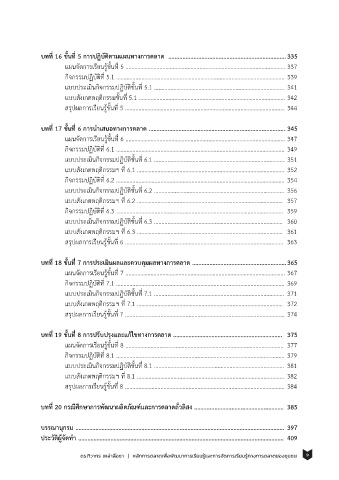 บทที 12 ขั้นที่ 1 เรียนรูชุมชน (Community) …………………………………………………..……….........…… 277 บทที 16 ขั้นที่ 5 การปฎบัติตามแผนทางการตลาด ........................................................................... 335