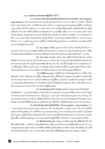 segmentation) เป็นการแบ่งสวนตลาดตามคณลกษณะของประชากร เชน อาย เพศ วย การศกษา เชอชาต ิ