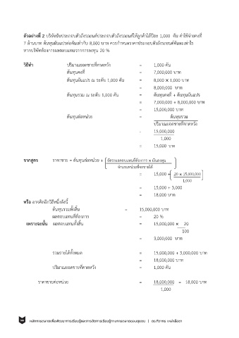 จากสูตร ราคาขาย = ต๎นทุนตํอหนํวย + อัตราผลตอบแทนที่ต๎องการ × เงินลงทุน