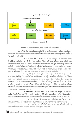 จากภาพที่ 9.2 เป็นการส่งเสริมการตลาดโดยใช้กลยุทธ์ผลักและกลยุทธ์ดึง เป็นการส่งเสริมทาง
