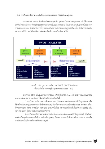 จากภาพที่ 11.10 เป็นรูปแบบการวิเคราะห์ SWOT (SWOT Analysis) โดยมีรายสภาพแวดลอม