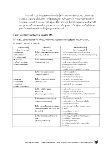 ตารางที่ 11.1 แผนจัดการเรียนรู๎ของรูปแบบการจัดการเรียนรู๎ทางการตลาดของชุมชน ตามแนวคิด CML: