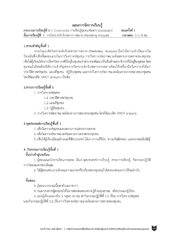 และกิจกรรมปฏิบัติที่ 1.2 เรื่องการวิเคราะห์สภาพแวดล้อมทางการตลาดของชุมชน