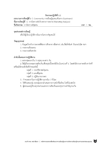 ชื่อกิจกรรม การวิเคราะห์ชุมชน เวลา 1 ชม.