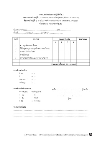 แบบประเมินกิจกรรมปฏิบัติที่ 1.1