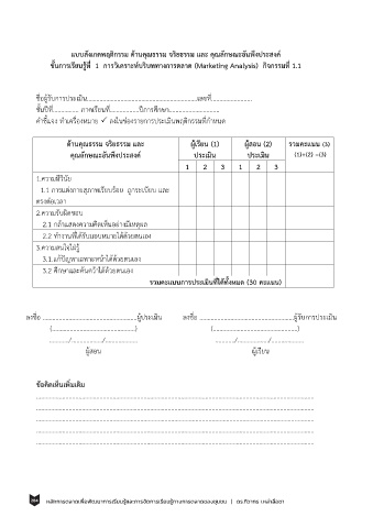ขั้นการเรียนรู้ที่ 1 การวิเคราะห์บริบททางการตลาด (Marketing Analysis) กิจกรรมที่ 1.1
