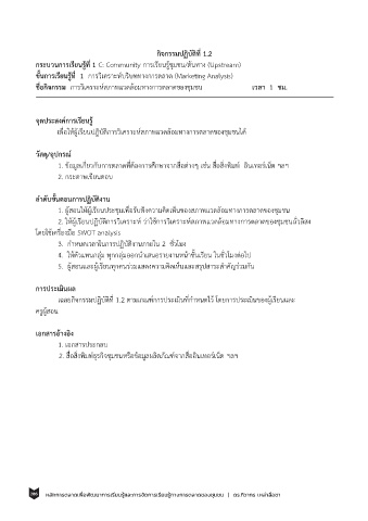 2. ให้ผเรียนปฏบัตการวิเคราะห์ วาใช้การวเคราะห์สภาพแวดลอมทางการตลาดของชมชนถั่วลสง